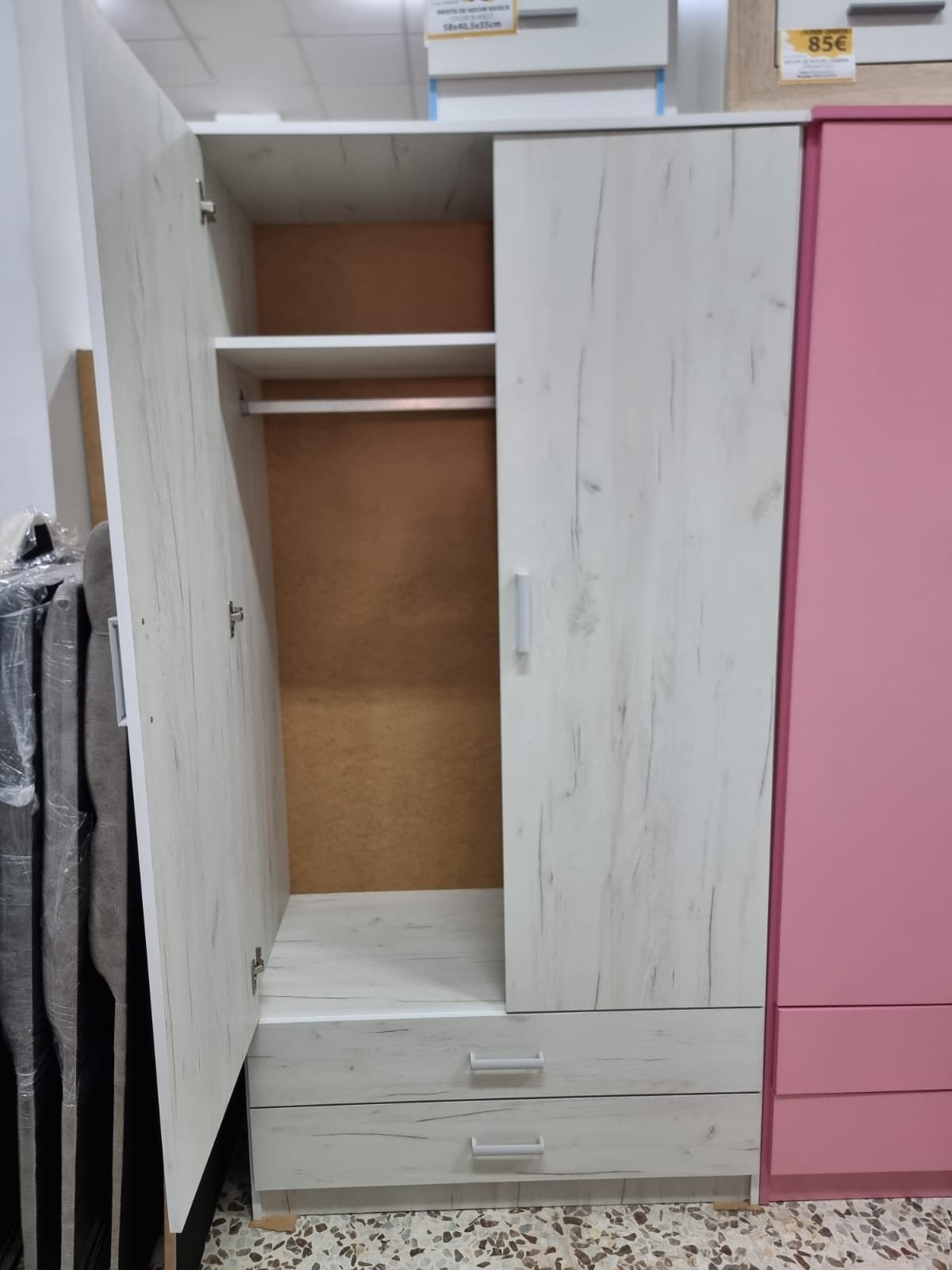 - Armario con espacio para percha y 2 cajones.