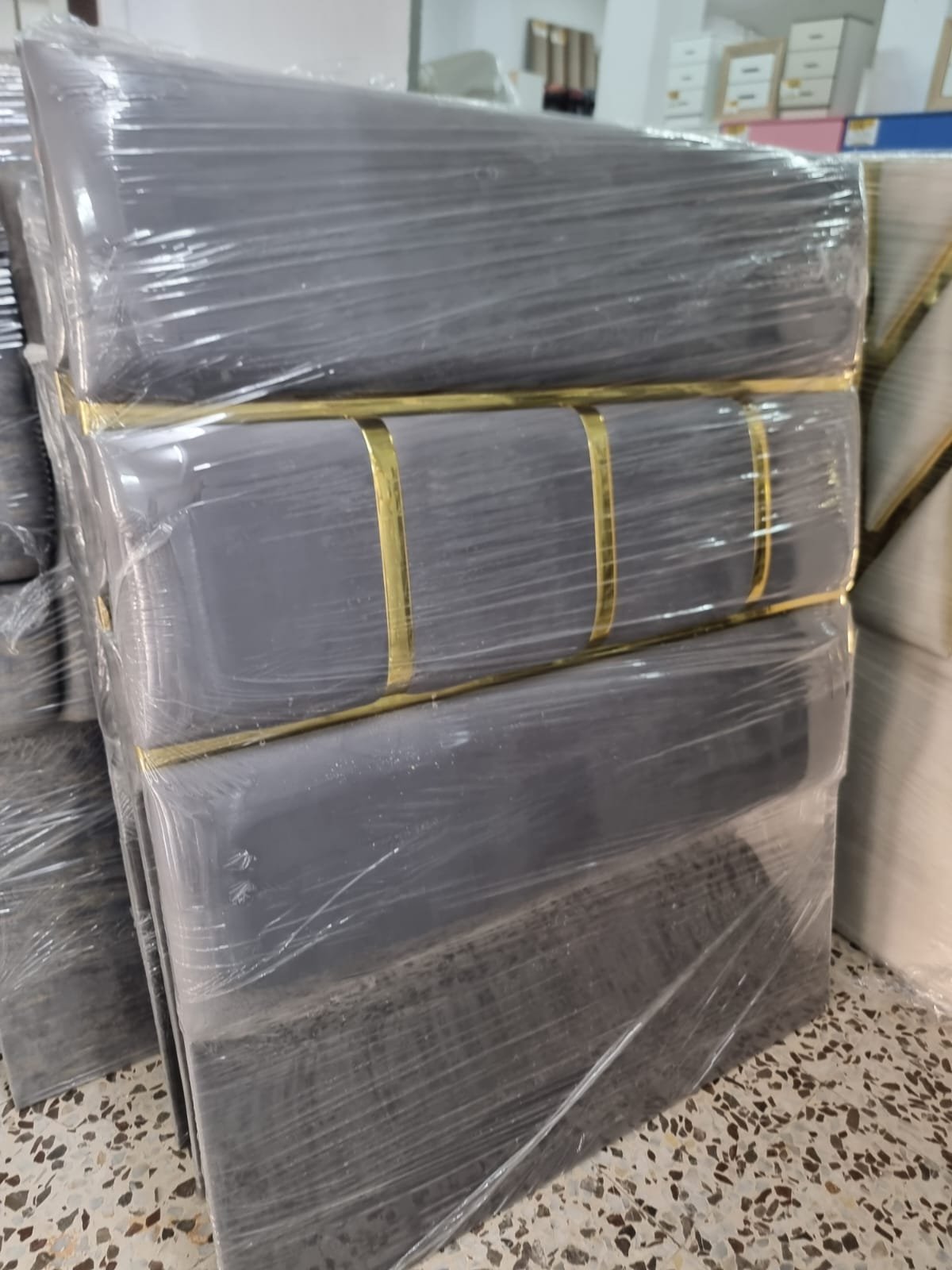 Cabecero tapizado Nórdico Barras Beige. 140 x 110cm