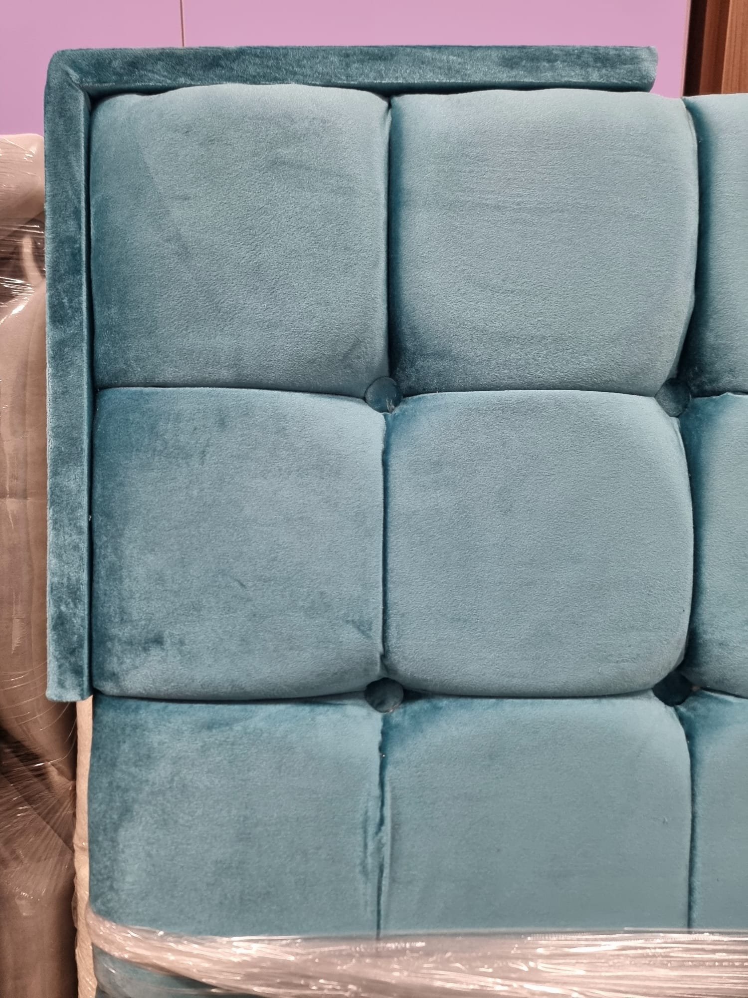 Cabecero tapizado Cabecero Pitágoras . Color Magnolia Cemento. 150x135cm