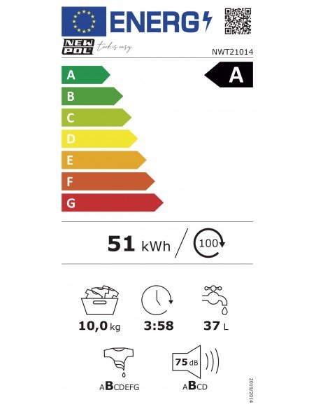 Lavadora de carga frontal con capacidad de 10 kg, 1400 rpm y 15 programas de lavado, diseñada para ofrecer un alto rendimiento y eficiencia. Cuenta con etiqueta energética A, motor Digital Drive silencioso y duradero, y un consumo optimizado de 37 litros de agua por ciclo y 51 kWh por cada 100 ciclos. Incorpora funciones avanzadas como programas rápidos de 12 y 60 minutos, programa antialérgico, detección automática de carga Eco-Logic, inicio diferido, bloqueo infantil y función vapor, que mejora la higiene y reduce arrugas. El sistema Twin Jet optimiza la mezcla de agua y detergente para un lavado más eficaz con menor consumo. Presenta un nivel de ruido de 75 dB, acabado en color blanco, y unas dimensiones de 84,5 x 59,7 x 58,2 cm, con un peso de 73,5 kg, siendo una opción completa y eficiente para el uso doméstico.